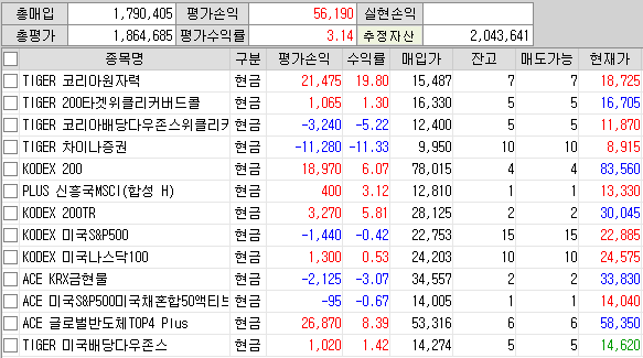 그동안 코리아원자력 1주 추가하고 PLUS 신흥국MSCI(합성 H)를 추가하여 1주, ACE 미국S&P500미국채혼합50액티브를 추가하여 1주 담았다.